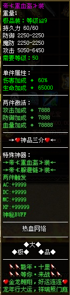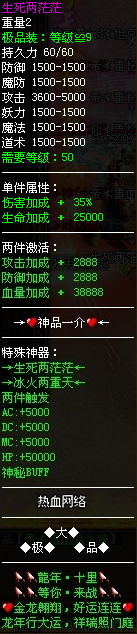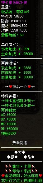 ▁▂▃▄▅▆▇█〓〓〓〓☆★装备全服:33套、神器18档、宝石40档、勋章20档、装备名字风骚至极~!☆★〓〓〓〓█▇▆▅▄▃▂▁